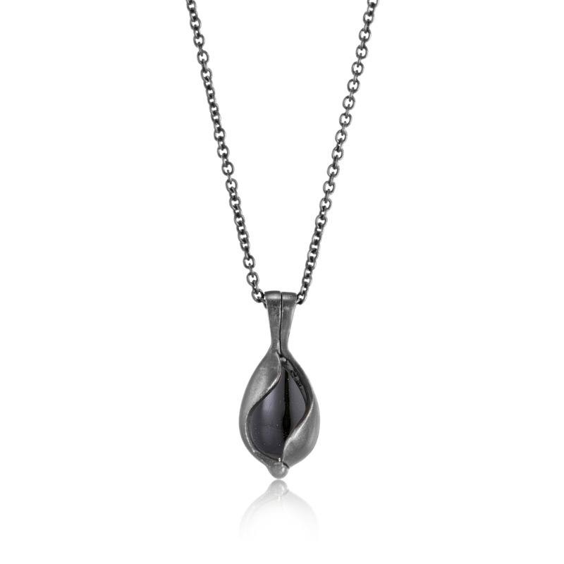 Halskæde i oxideret sølv med sort onyx. Du kan nemt og enkelt skifte sten i halskæden.