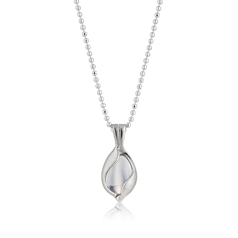 Halskæde i sølv med rå icecrushed overflade og med bjergkrystal. Du kan selv skifte sten i smykket.