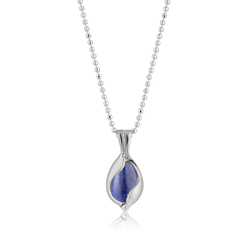 Halskæde i sølv med en icecrushed mat overflade og med blå aventurin. Du kan selv skifte sten i smykket.