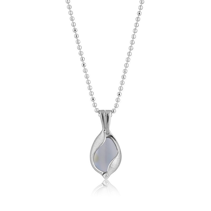 Halskæde i sølv med rå icecrushed overflade og fin grå-blå agat. Du kan selv skifte sten i halskæden.