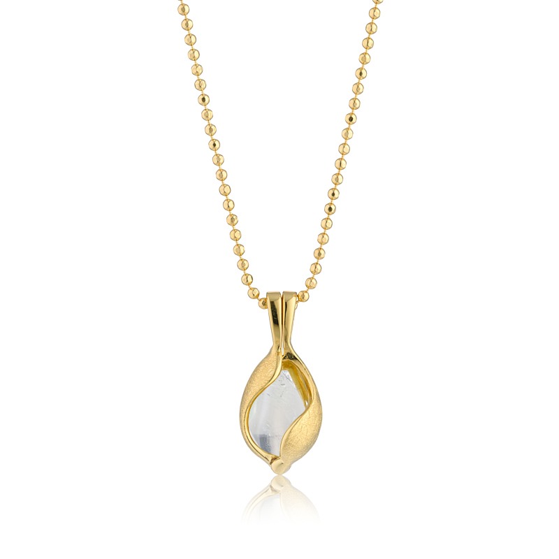Halskæde i forgyldt med cool icecrushed overflade og med grøn krystal. Du kan selv skifte sten i halskæden.