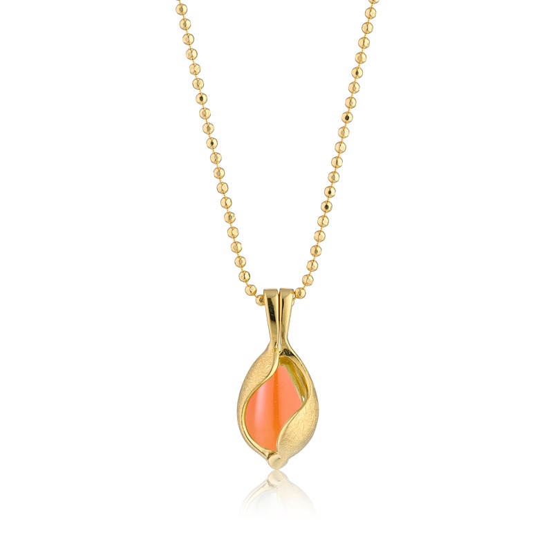 Halskæde i forgyldt sølv med rå icecrushed overflade og med orange karneol.