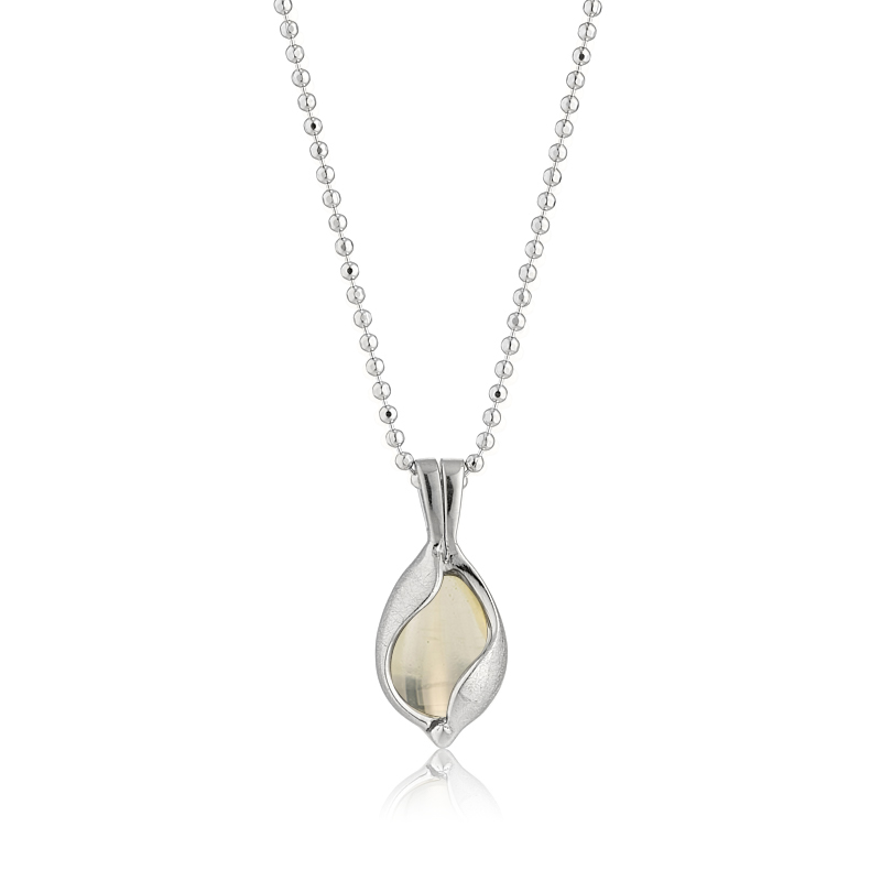 Unik halskæde hvor du nemt og enkelt kan skifte sten. Halssmykket kommer med en dråbeformet lemonkvarts.