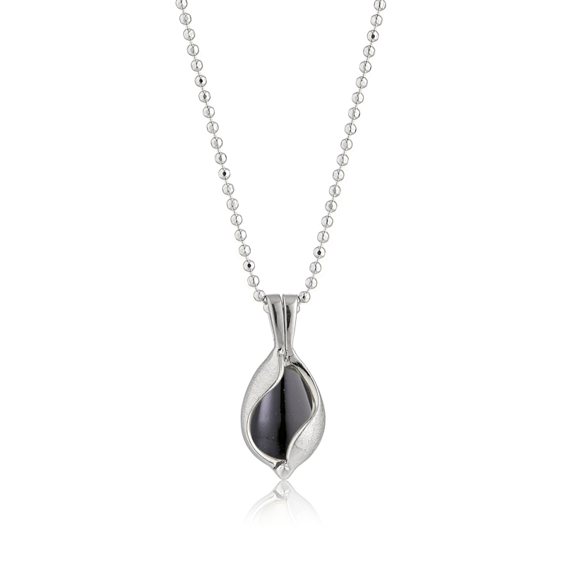 Halskæde i sølv med en icecrushed rå overflade og med sort onyx. Du kan selv skift sten i kæden.