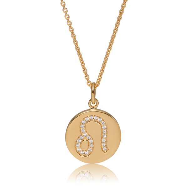 Halssmykke i guldbelagt sølv med Zodiac Stjenetegn. Smykket er håndfattet med 25 zirkonia.