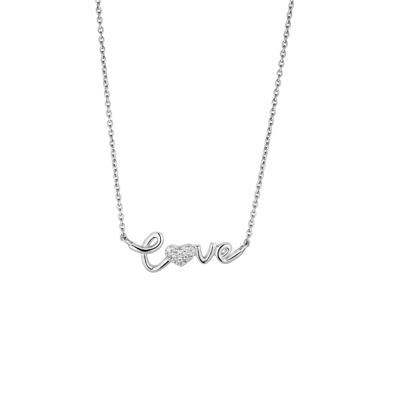 Smuk og elegant halskæde i kærlighedens tegn. Halskæden er i sølv og dekoreret med skinnende zirkoner.