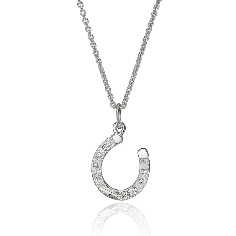 Lykkebringende hestesko i sølv med zirkonia.
