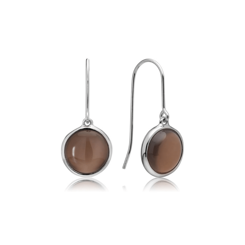 Feminine øreringe i sølv med stor og smuk grå agat.