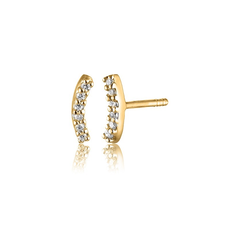 Smukke ørestikker i sølv belagt med 18 karat guld, dekoreret med en række af lysende zirkoner.