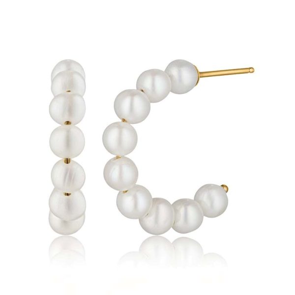 Creoler med smukke hvide ferskvandsperler. Creolen er i sølv belagt med 18 karat guld og med de smukkeste perler.