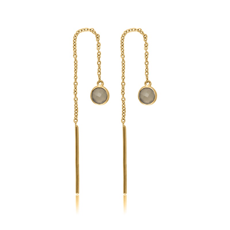 Smukke ørehængere i forgyldt sølv med grå agat. Se også flere matchende halskæde og armbånd.