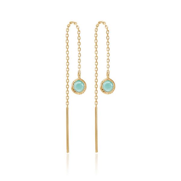 Feminine øreringe i guldbelagt sølv med smuk aqua calcedon.