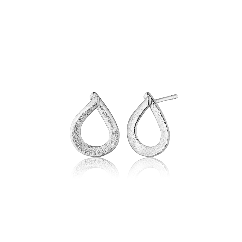 Dråbeformede ørestikker i sandblæst sølv. Overfladen giver et råt look kombineret med et klassisk udtryk.
