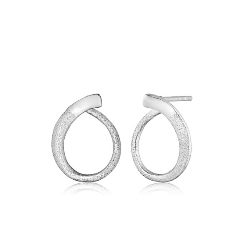 Øreringe i sølv med mat overflade og blanke kanter. Den piskede overflade kombineret med polerede kanter giver ørepynten lidt ekstra kant.
