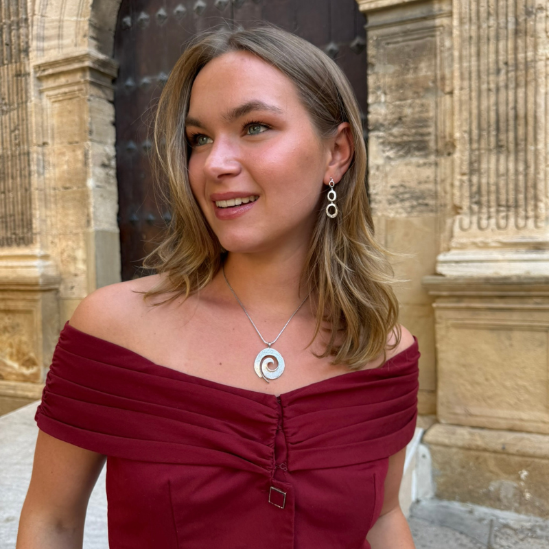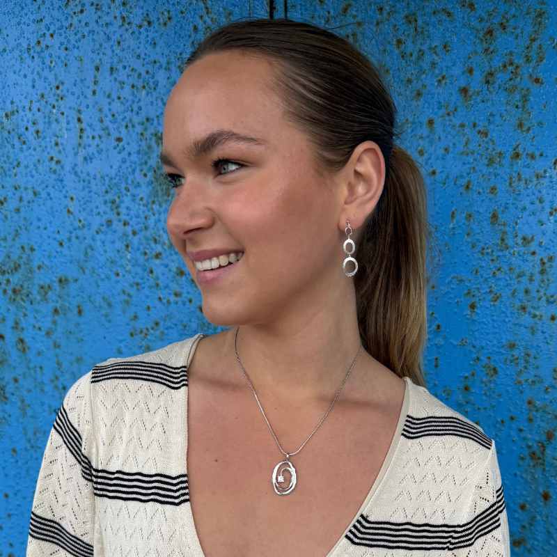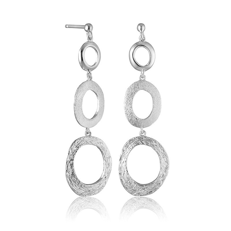 Øreringe i sølv hvor de forskellige overflader giver smykket en skøn og feminin udstråling.