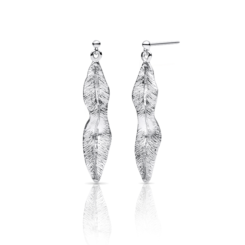 Smukke fjer-øreringe i sølv med et råt, men feminint udtryk.