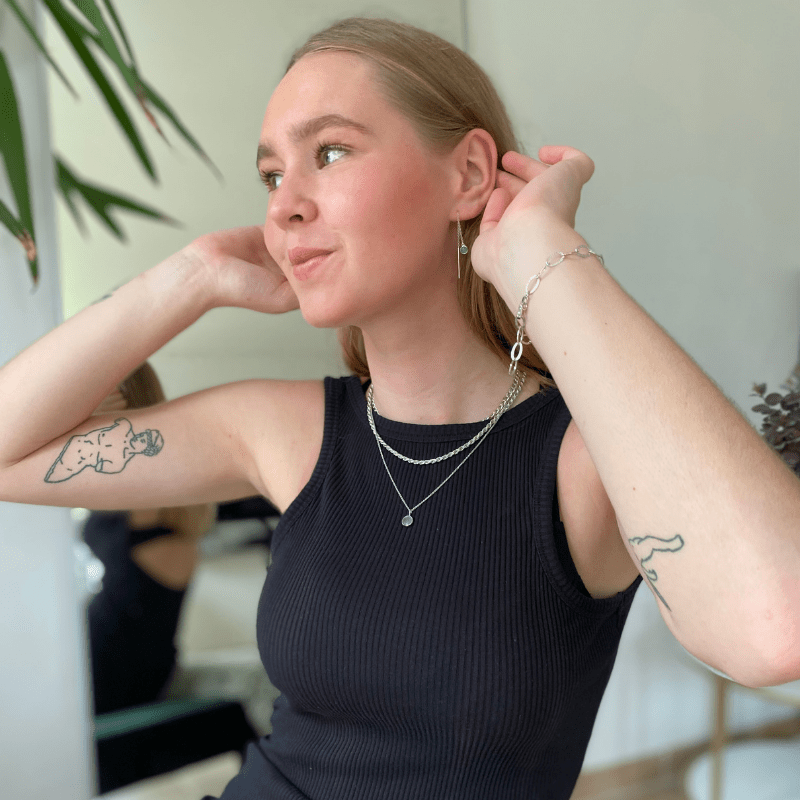| Materiale og overflade | Sterling sølv (925) belagt med rhodium (plejefrit) |