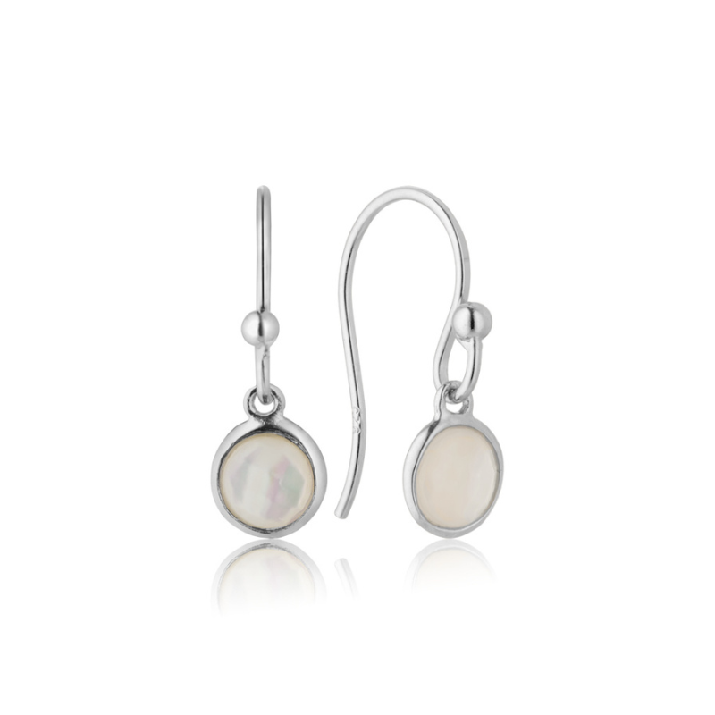 Smukke øreringe på bøjle i sølv med hvid perlemor.
