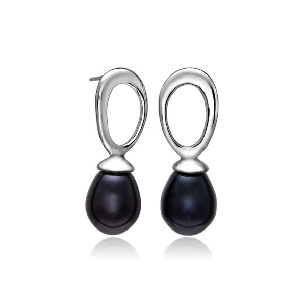 Feminine øreringe i sølv med en sort ferskvandskulturperle.