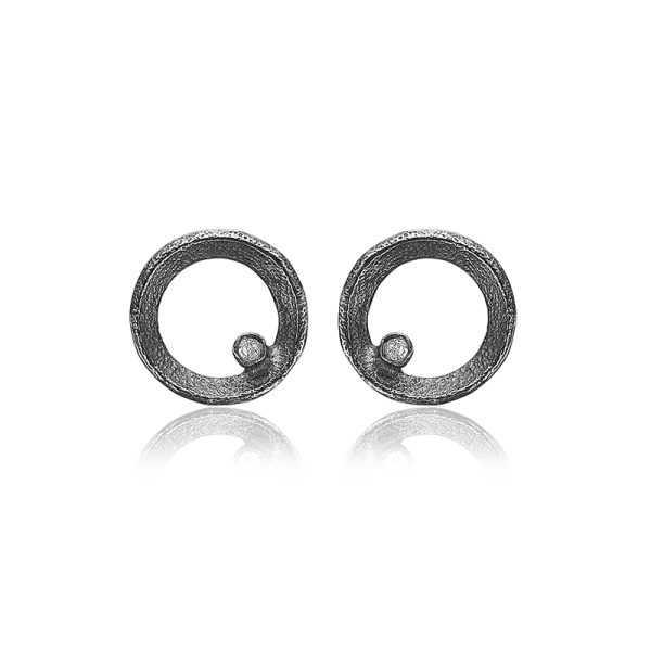 Ørestikker i oxideret sølv dekoreret med en smuk zirkon.