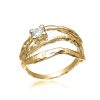 Populær ring i forgyldt sølv med rustik overflade og feminin sten. Ringen er inspireret af naturens dynamik, med en stilren og smukt indfattet zirkonia.