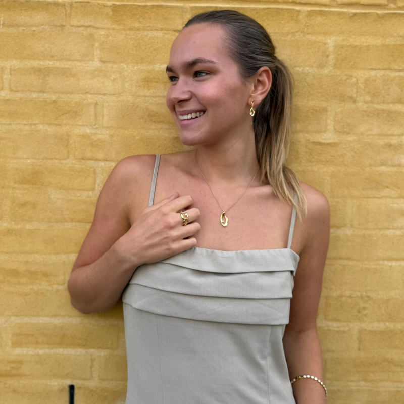 | Materiale og overflade | Sterling sølv (925) belagt med 18 karat guld |