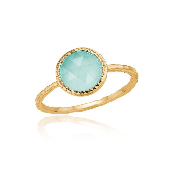 Feminin ring i guldbelagt sølv med smuk aqua calcedon.