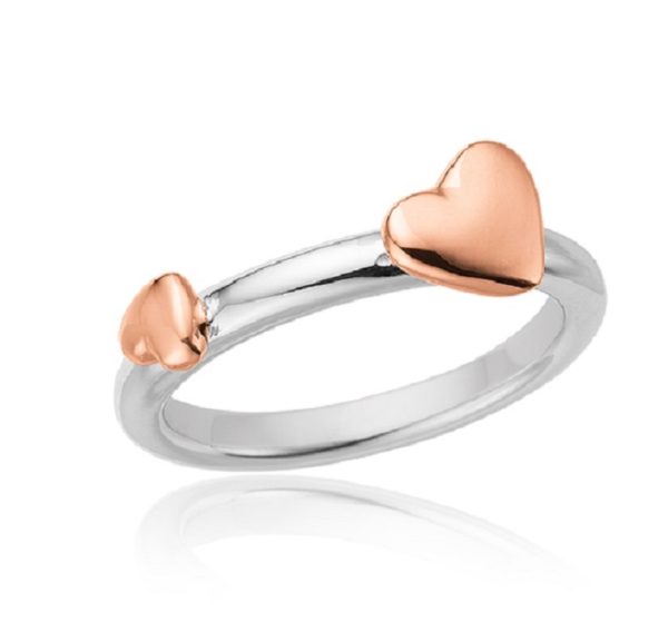 Feminin ring i blankpoleret sølv med rosaforgyldte sølvhjerter. Kan enten bæres alene, eller sættes sammen med flere af vores samleringe.