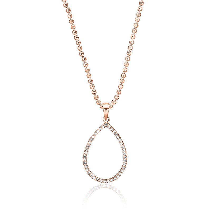 Smuk dråbeformet rosaforgyldt vedhæng med smukke zirkoner i et elegant og stilrent design.