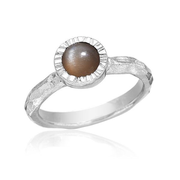 En skøn samlering i sølv, hvor den klassiske månesten møder den mere rustikke overflade.