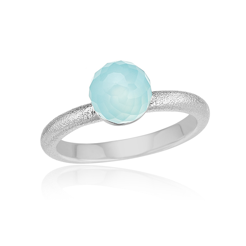 Smuk ring i sølv med Aqua Calcedon. Kan bæres alene, eller sættes sammen med én eller flere af de øvrige samleringe.