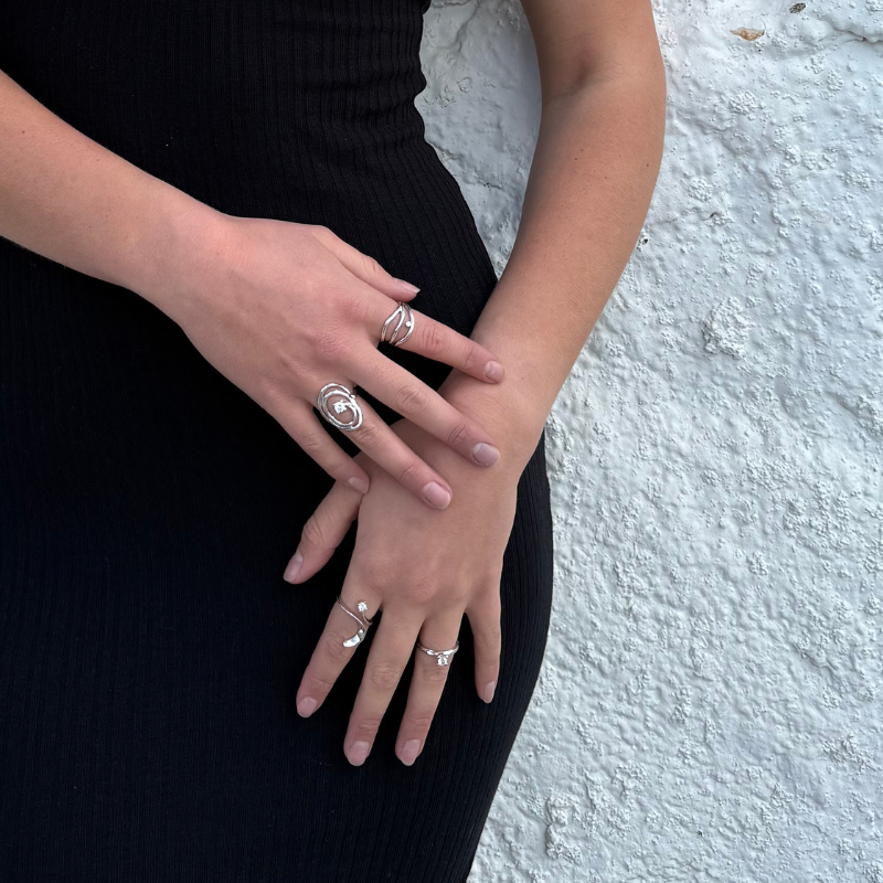 Smuk klassisk samlering i sølv med en hvid topaz. På en gang rå, feminin og klassisk i sin form.