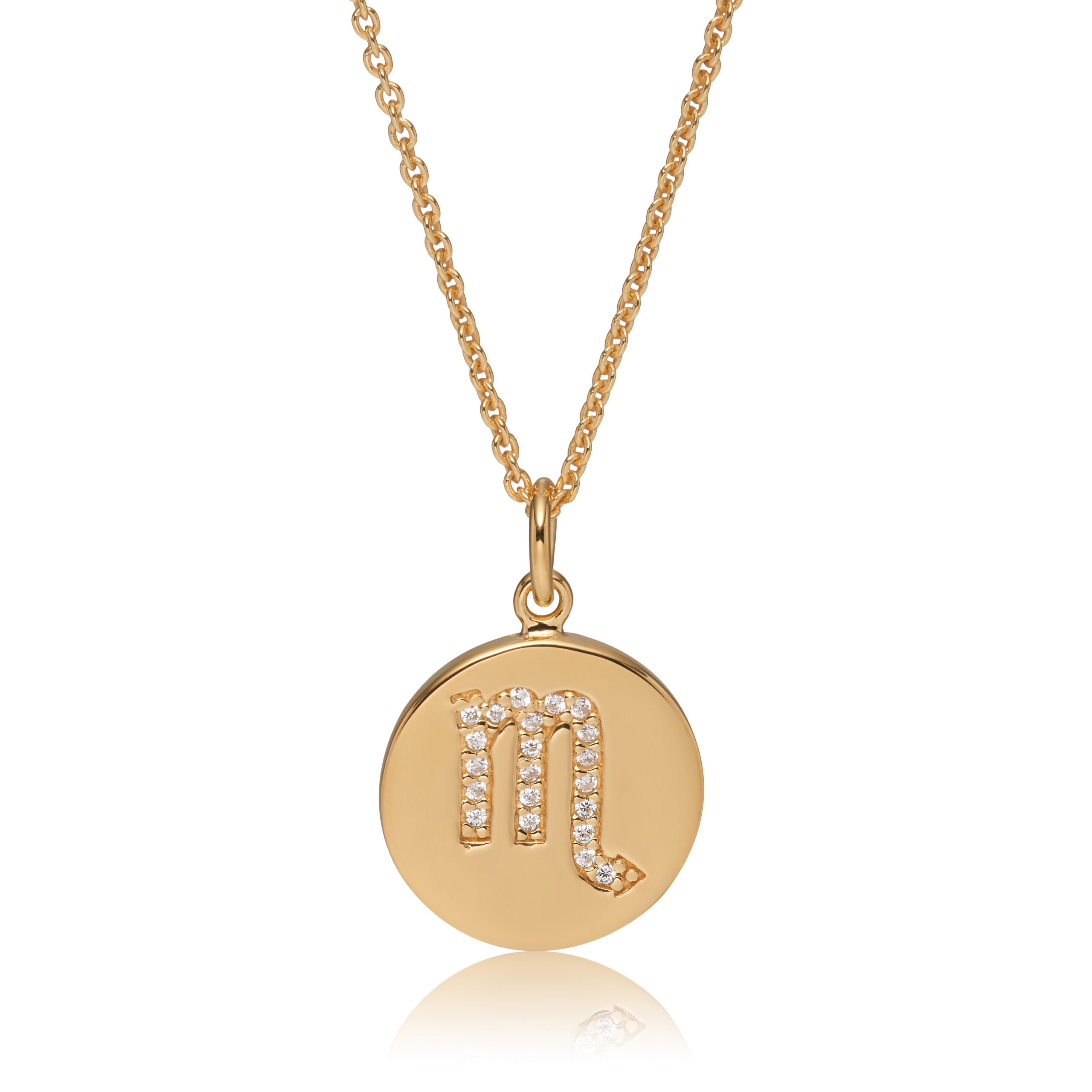 Halssmykke i guldbelagt sølv med Zodiac Stjenetegn. Smykket er håndfattet med 21 zirkonia.