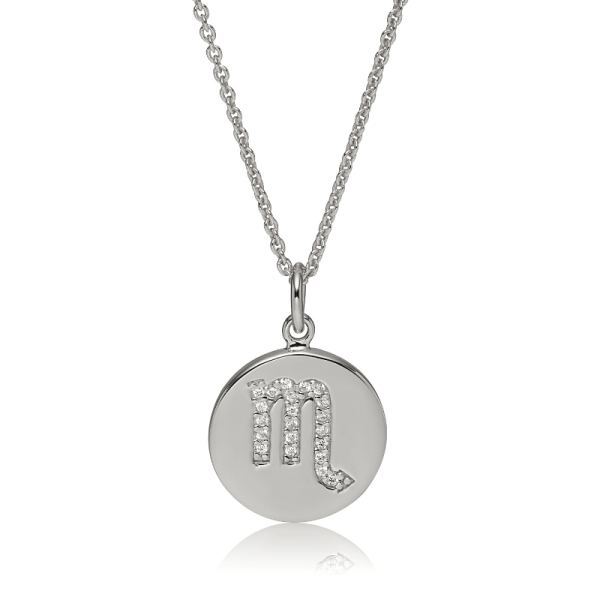 Halssmykke i sølv med Zodiac Stjenetegn. Smykket er håndfattet med 21 zirkonia.