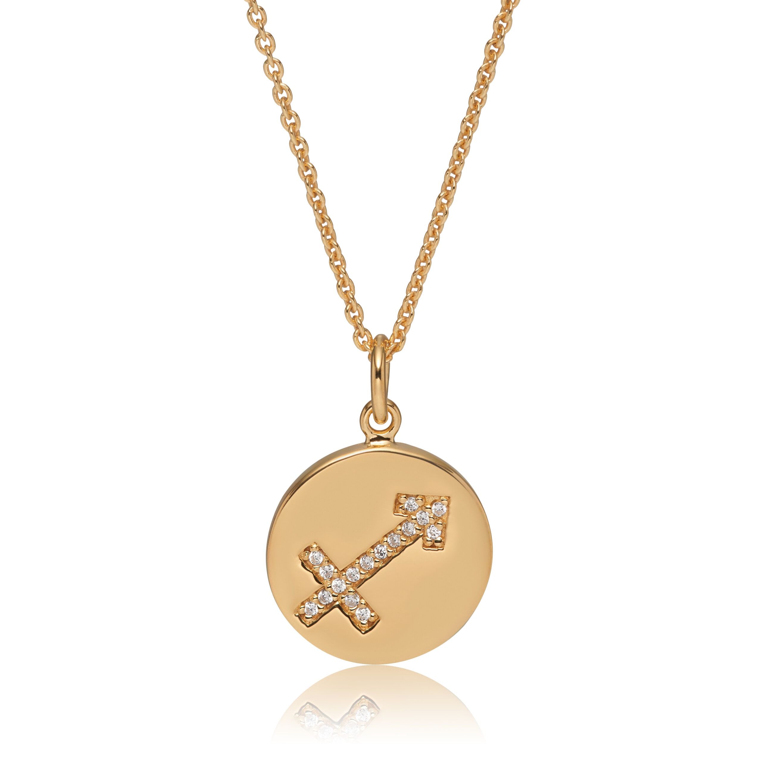 Halssmykke i guldbelagt sølv med Zodiac Stjenetegn. Smykket er håndsattet med 16 zirkonia.