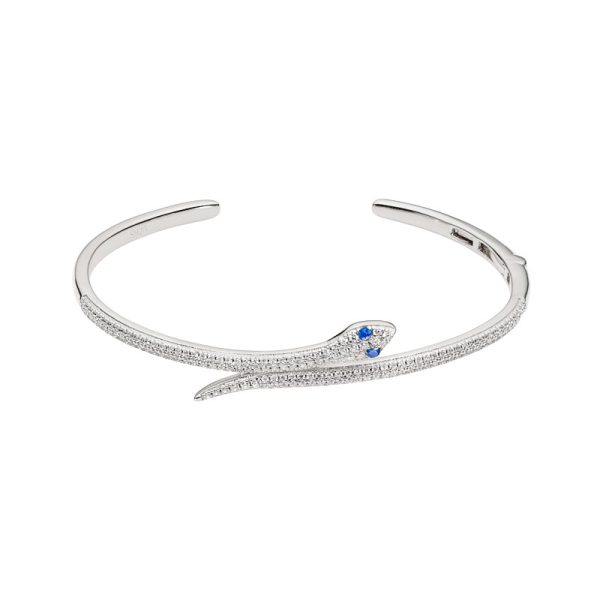 Slangearmbånd i sølv med 162 håndfattede zirkonia i hvide og blå. Armbåndet er ovalt med en åbning i den ene side således at det sidder perfekt på håndleddet.