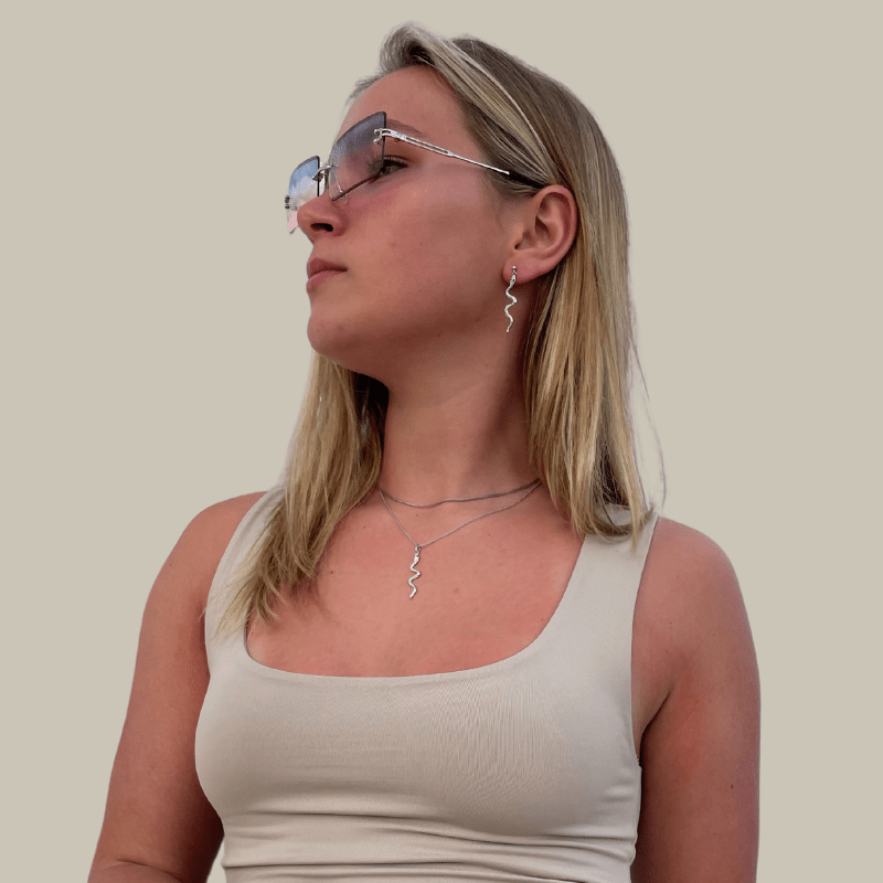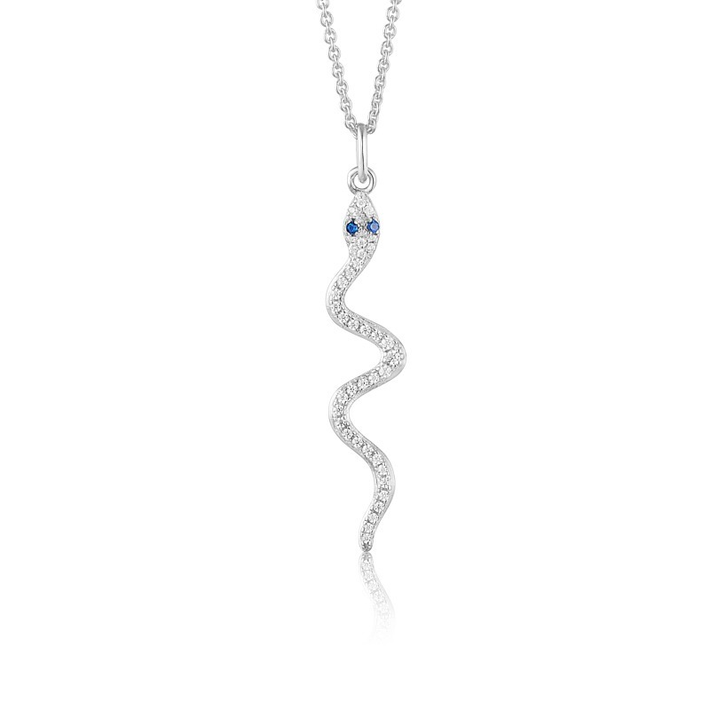 Slangevedhæng i sølv med 42 håndfattede zirkonia i hvide og blå.