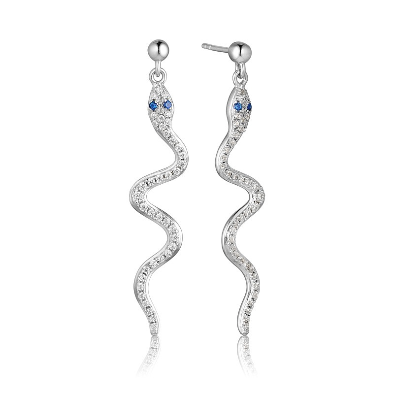 Slangeøreringe med hvide og blå zirkonia