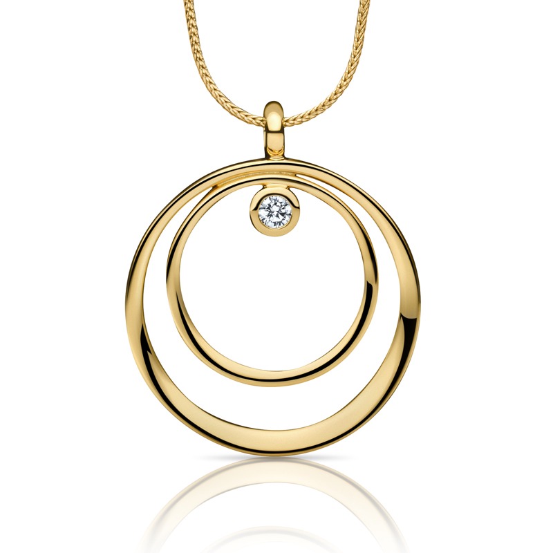Et klassisk halssmykke i forgyldt sølv og med en smuk zirkonia. Et smykke med masser af kant og personlighed.