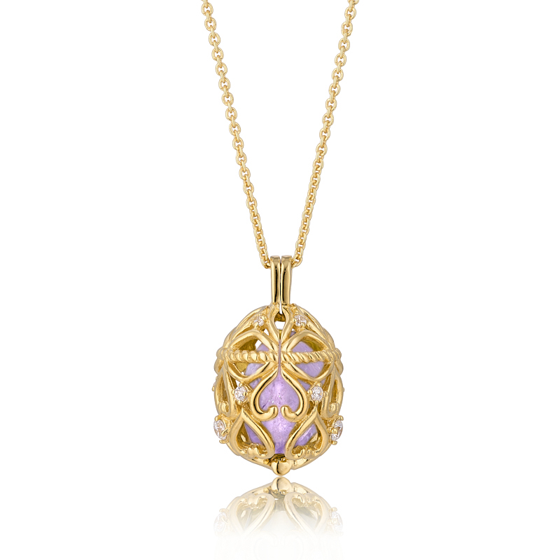 Halskæde i guldbelagt sølv pyntet med zirkonia og og ametyst. Du kan nemt skifte ædelsten i smykket.