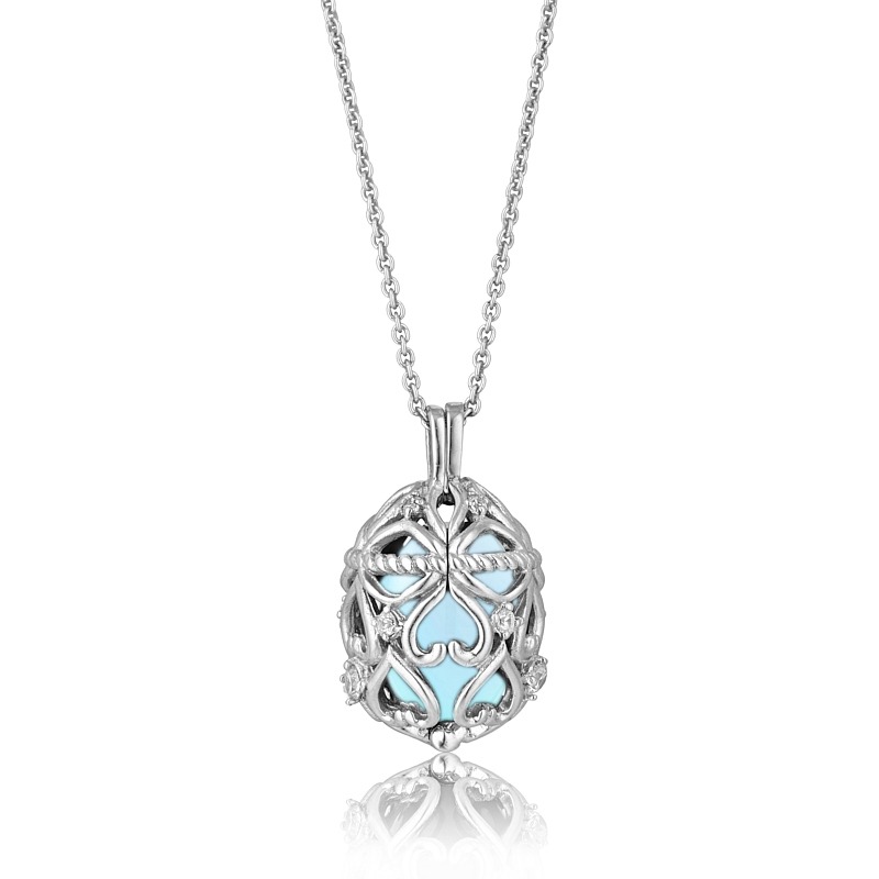 Halskæde i sølv med zirkonia og aqua calcedon. Du kan selv skifte sten i smykket.