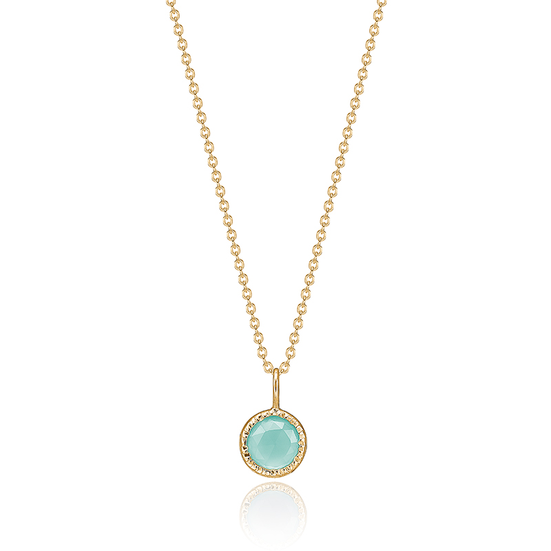 Halskæde i sølv pyntet med 14 zirkonia og en blå aventurin. Du kan selv skifte sten i smykket.