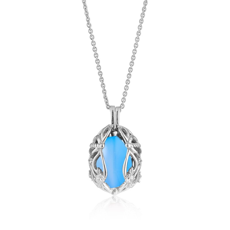 Vedhæng i sølv med zirkonia og blå onyx. Du kan nemt skifte sten i din halskæde.