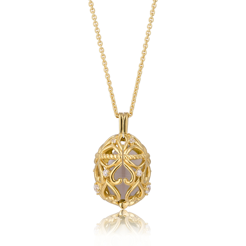 Halskæde i forgyldt sølv pyntet med zirkonia og grå agat. Du kan selv skifte ædelsten i smykket.