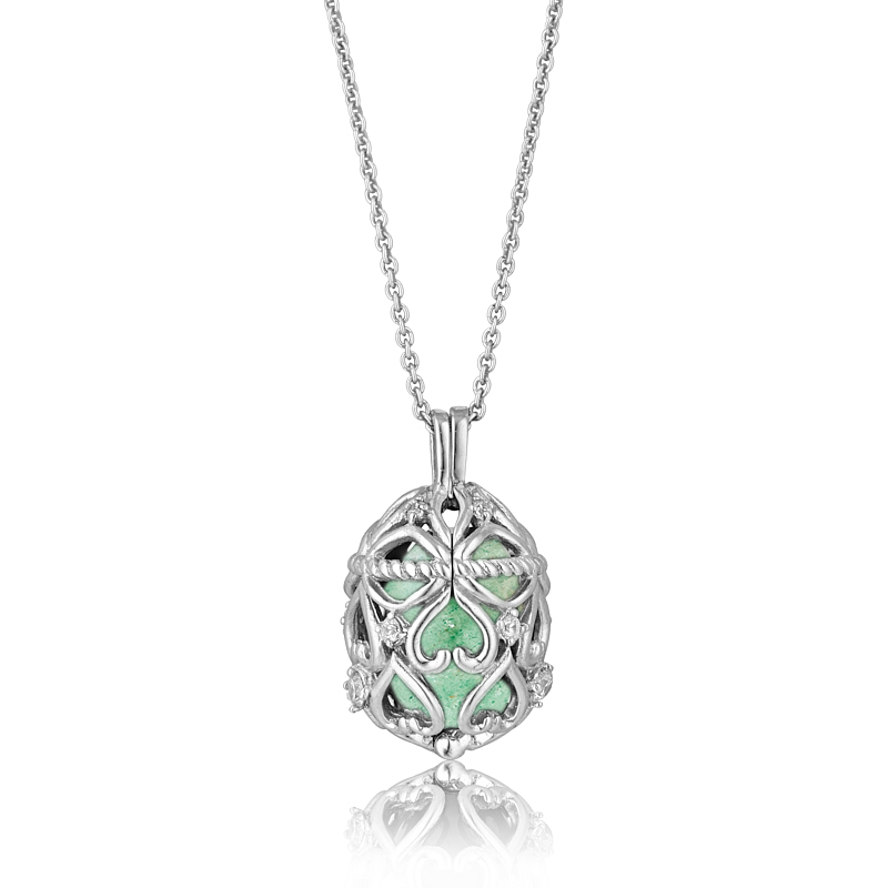 Halskkæde i sølv, pyntet med zirkonia og grøn aventurin. Du kan nemt skifte sten i smykket.