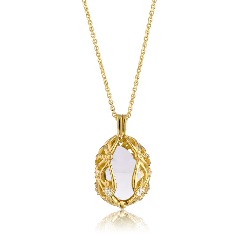 Halskæde i guldbelagt sølv pyntet med zirkonia og bjergkrystal. Du kan nemt skifte sten i smykket.