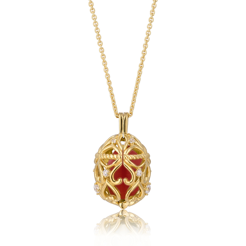 Halskæde i forgyldt sølv pyntet med zirkonia og rød agat. Du kan selv skifte sten i halssmykket.