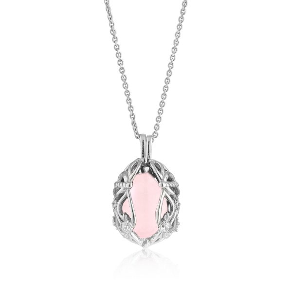 Halssmykke i sølv med zirkonia og feminin rosakvarts. Du kan nemt og enkelt skifte sten.