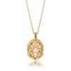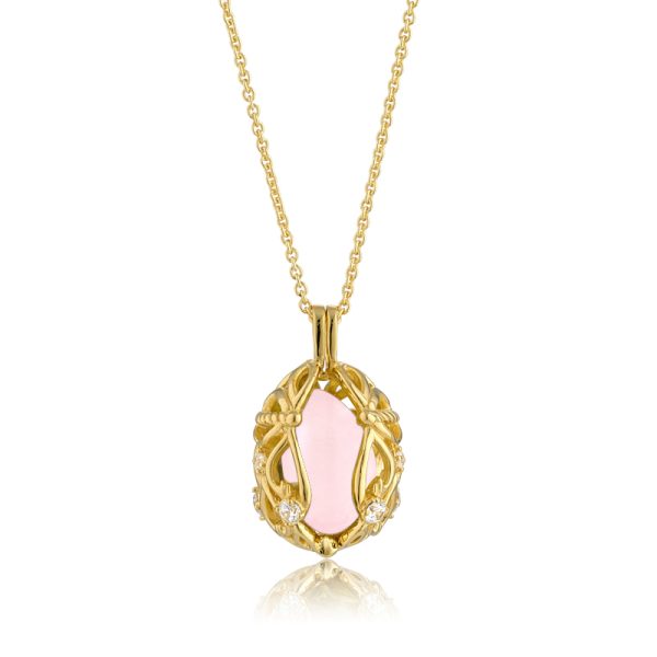 Halskæde i forgyldt sølv med zirkonia og rosakvarts. Du kan nemt skifte ædelsten i smykket.