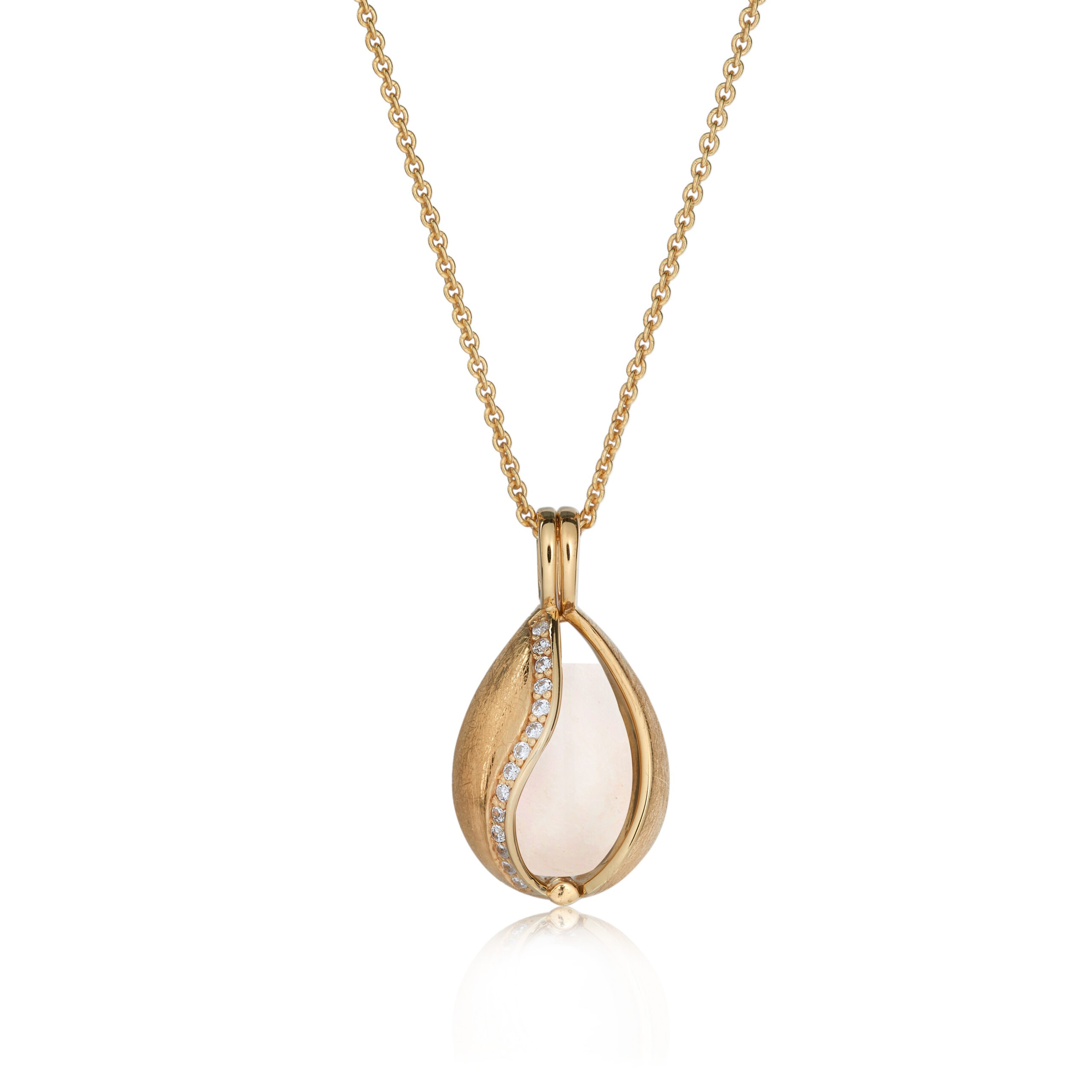 Halskæde i guldbelagt sølv pyntet med 14 zirkonia og snekvarts. Du kan selv skifte sten i smykket.